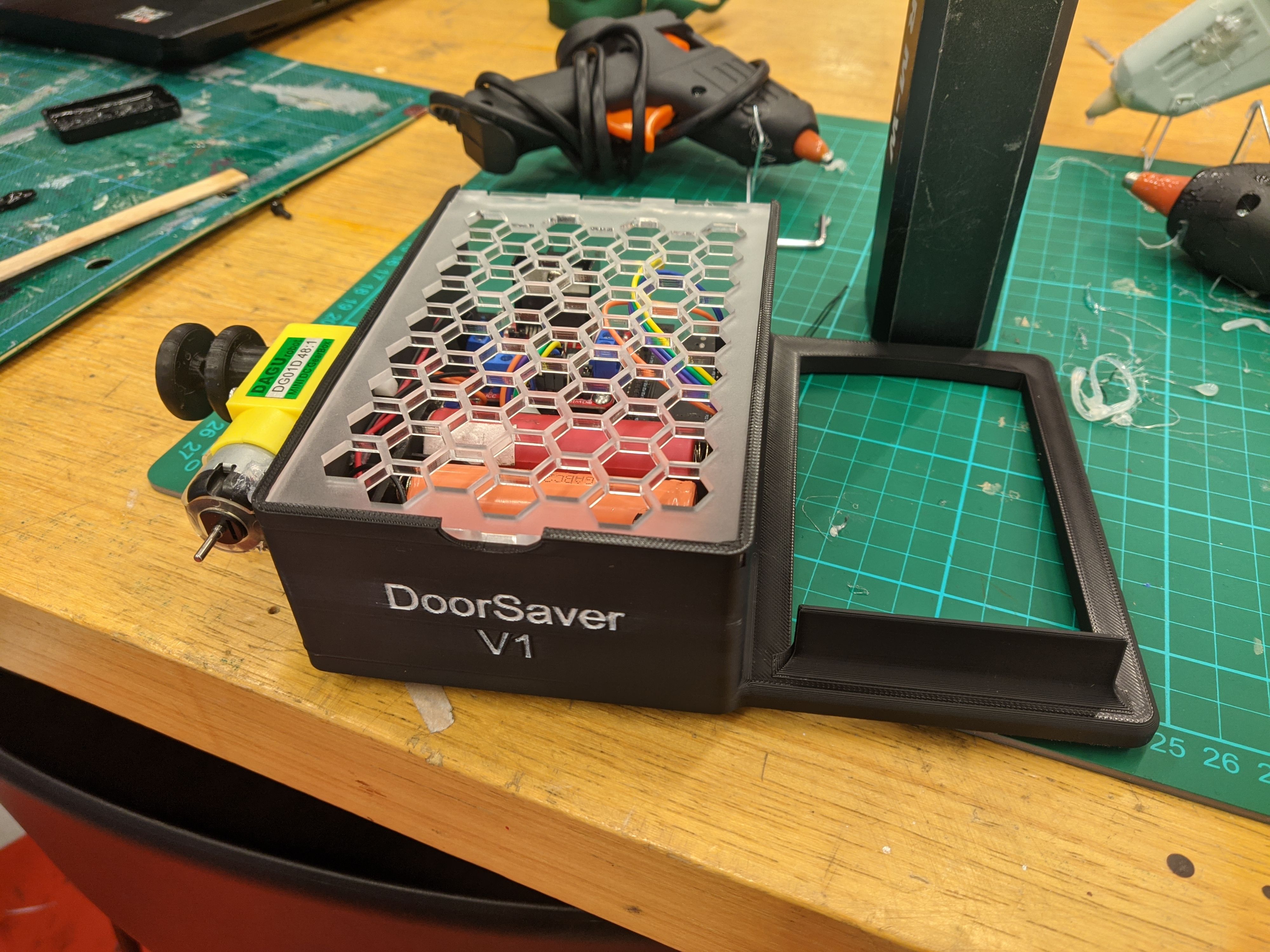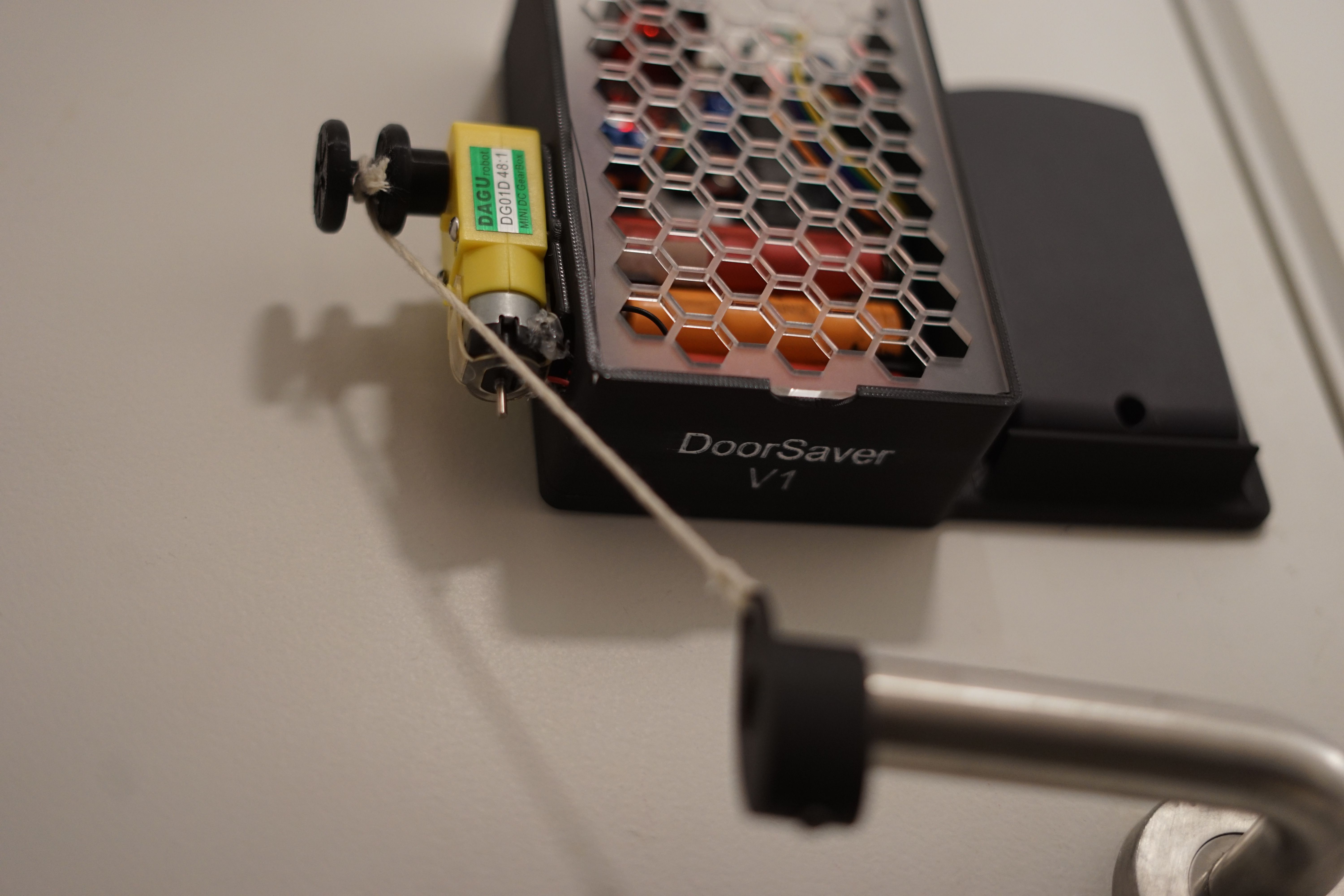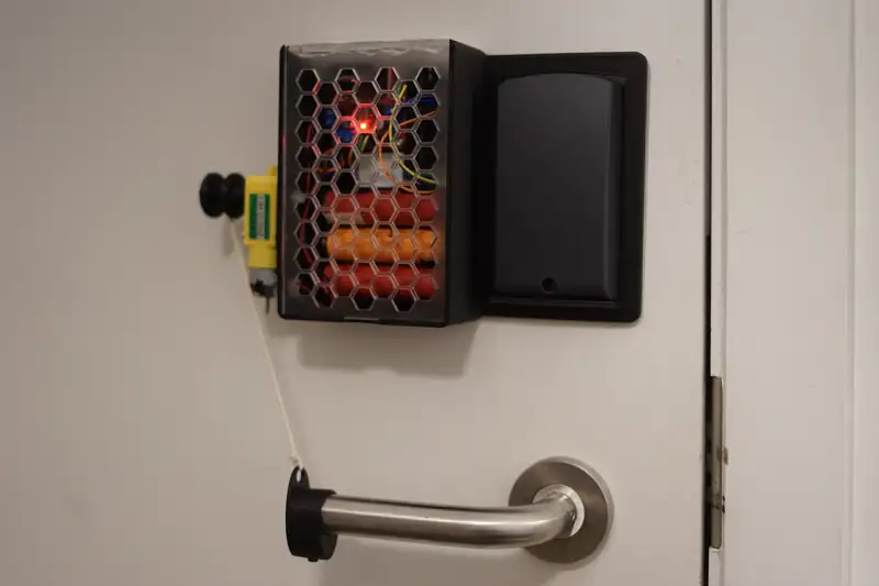 To solve this, I created a couple of prototype devices as part of my Innovate 100G course. They resolve lockouts by physically lifting the door handle from the inside, bypassing the university’s locking mechanism entirely.
