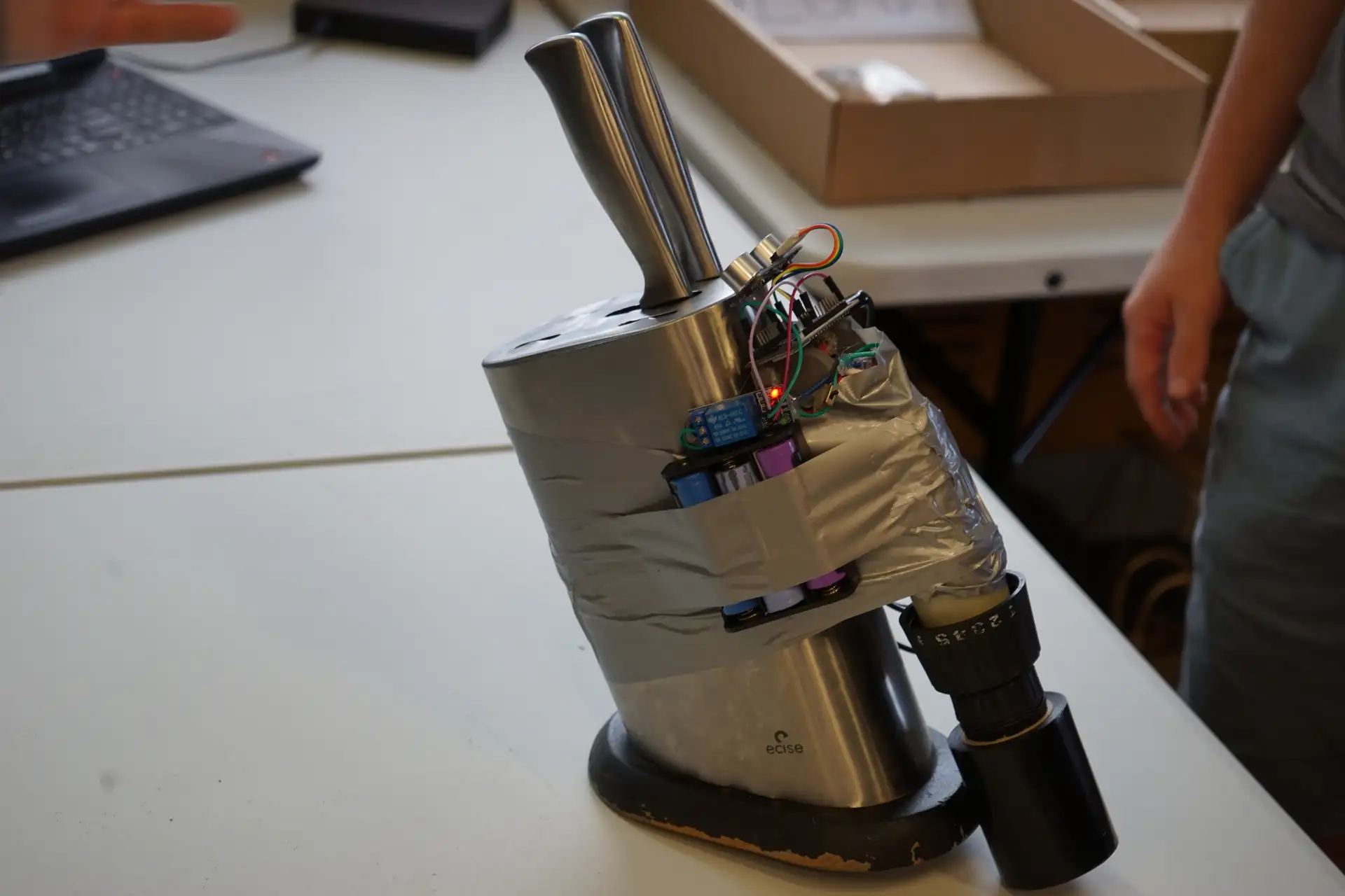 We added facial recognition to the pot, so every time you look at it, it turns off. When you look away, it turns back on. Awful.