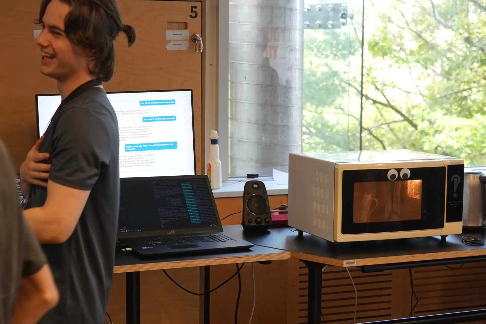 For the Microwave, we took away it’s physical controls, and bolted on a microphone. From now on, you can only control it by convincing a self-absorbed GPT-4 agent to turn on the Microwave. It’ll listen to your requests, and if you call it Master while using only the finest of manners, it’ll send the command to run the microwave. It also displays the conversation history on an IPad above the microwave, and will happily insult you through the speaker system.